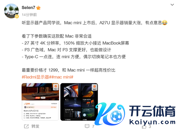 值得提防的是,据智能硬件市集淡雅东谈主@Selen7 先容,新款Mac mini上市后,Redmi露出器A27U销量大涨,以致现在京东王人仍是卖断货了。