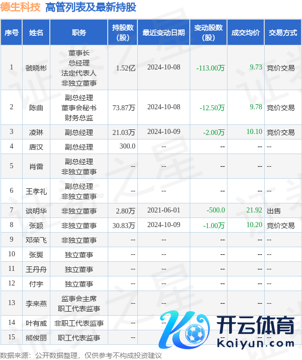 德生科技近半年内的董监高及中枢时间东说念主员增减执确定如下: