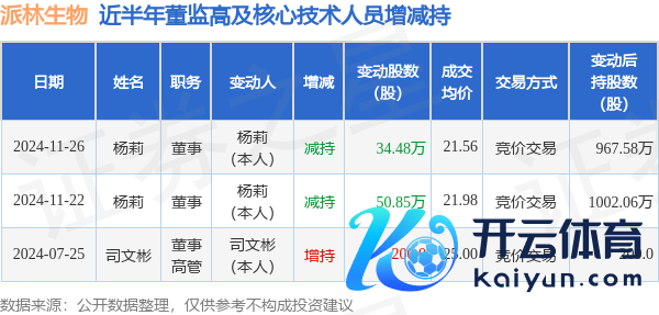 派林生物近半年内的董监高及中枢技巧东谈主员增减捏确定如下: