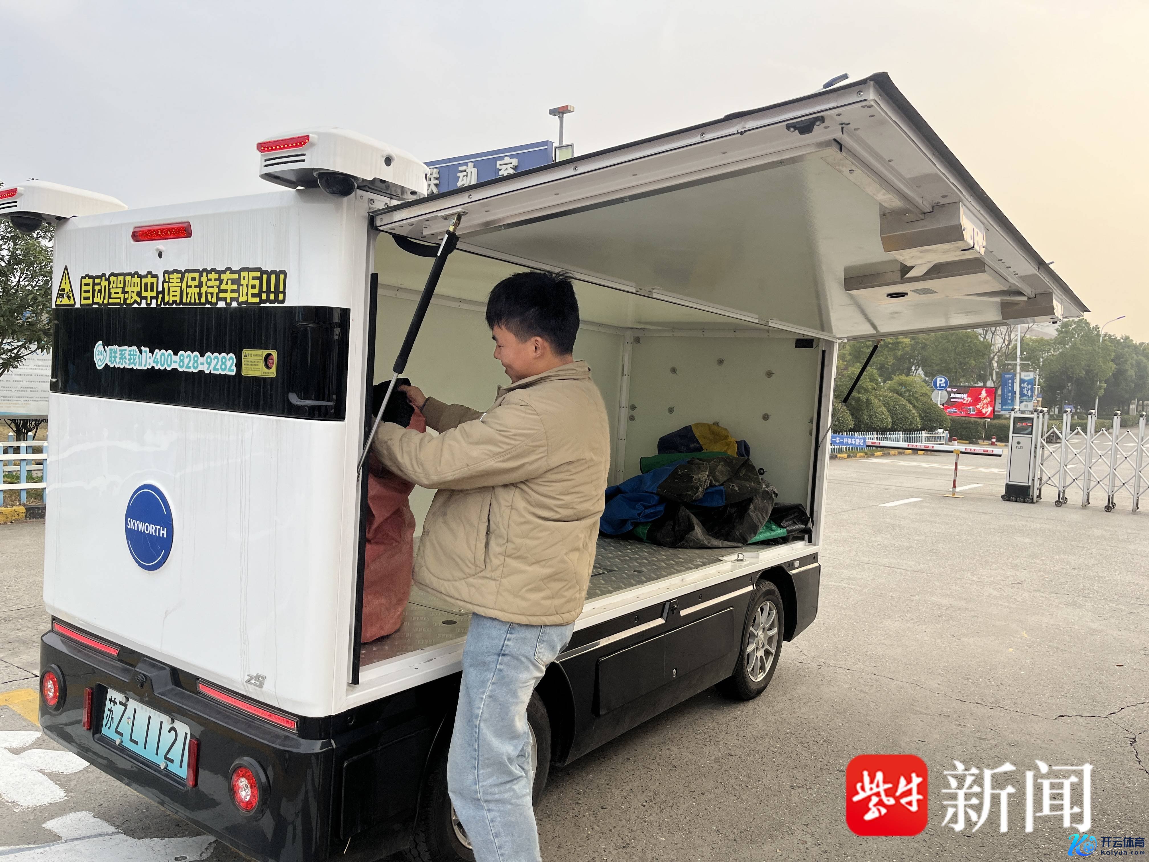 “真抢眼,我第一次用无东说念主车,很浅显!刚到园区开yun体育网,无东说念主车还是在门口等着,扫个码掀开边门就装,关上门就送进去,省时宽解又省力。”江苏省南京市溧水区开沃园区的一位快递小哥说。脚下恰是“双12”大促时辰,快递量迎来岑岭,快递小哥并不焦灼。