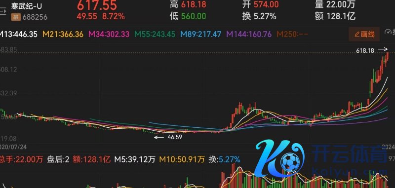 18日盘中,寒武纪股价抓续走高,股价受此冲破600元大关,总市值超2500亿元。从2023年头于今,寒武纪股价涨幅达10倍,较2024年2月的低点(95.85元)涨幅达500%。截止收盘,寒武纪股价报617.55元/股,大涨8.34%,总市值2578亿元。