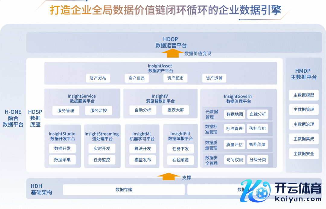 H-ONE 会通数据平台包含四大一级平台,包括基础架构 Hadoop 刊行版 HDH 、数据奇迹平台 HDSP 、主数据经管平台 HMDP 、数据运营平台 HDOP 。八大二级平台,数据斥地平台 InsightStudio、流处理平台 InsightStreaming、机器学习平台 InsightML、数据填报平台 InsightFill、数据治理平台 InsightGovern、数据钞票平台 InsightAsset、数据奇迹平台 InsightService 、洞见智数 BI 平台 InsightV 。