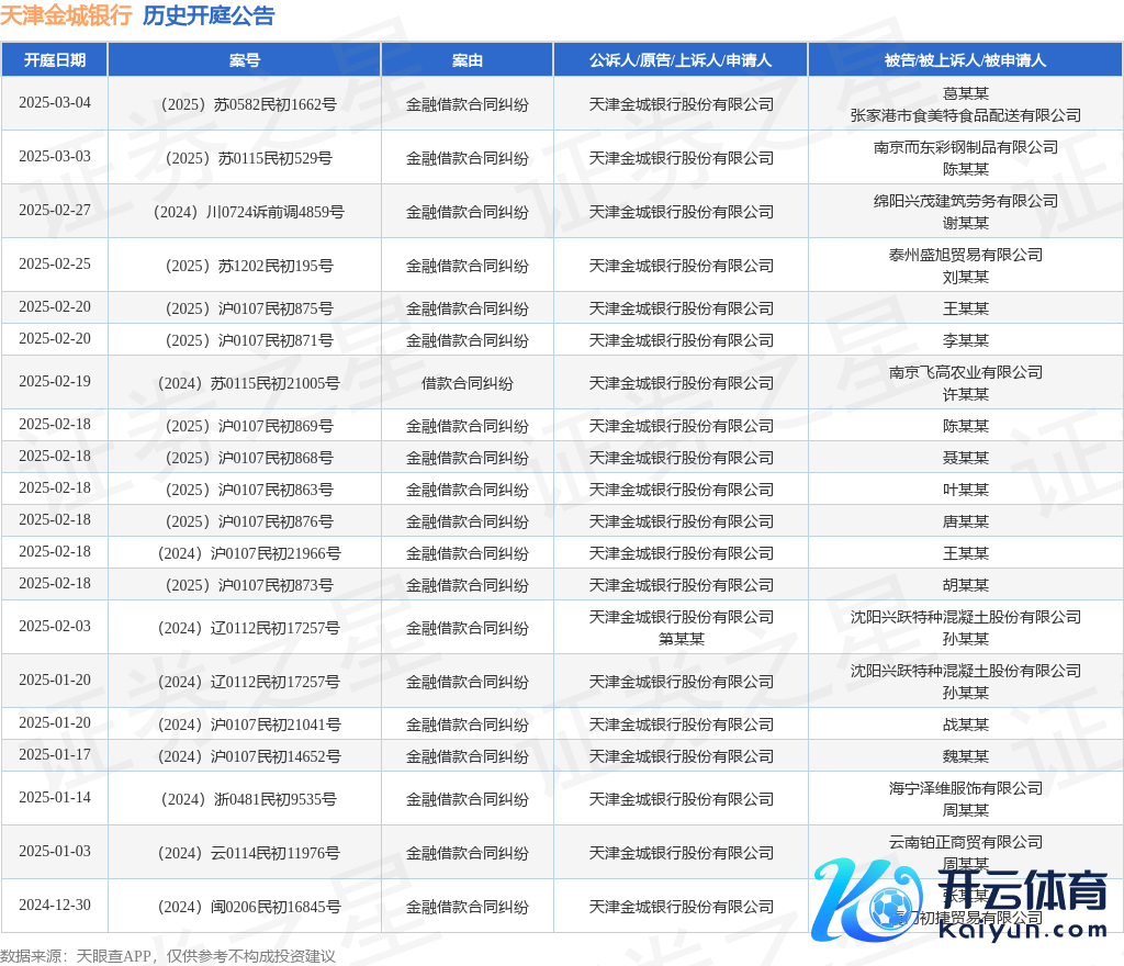 本站音尘,凭据天眼查APP线路开云体育(中国)官方网站,近日公布了一则天津金城银行股份有限公司当作原告/上诉东说念主的开庭公告,详备实质如下: