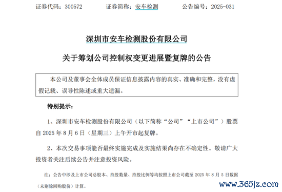 经苦求,公司股票自2025年8月6日(星期三)上昼开市起复牌。
