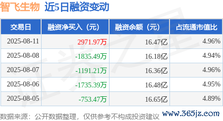 本站音讯,8月11日,智飞生物(300122)融资买入1.03亿元,融资偿还7376.44万元,融资净买入2971.97万元,融资余额16.47亿元,近20个交往时中有11个交往时出现融资净买入。