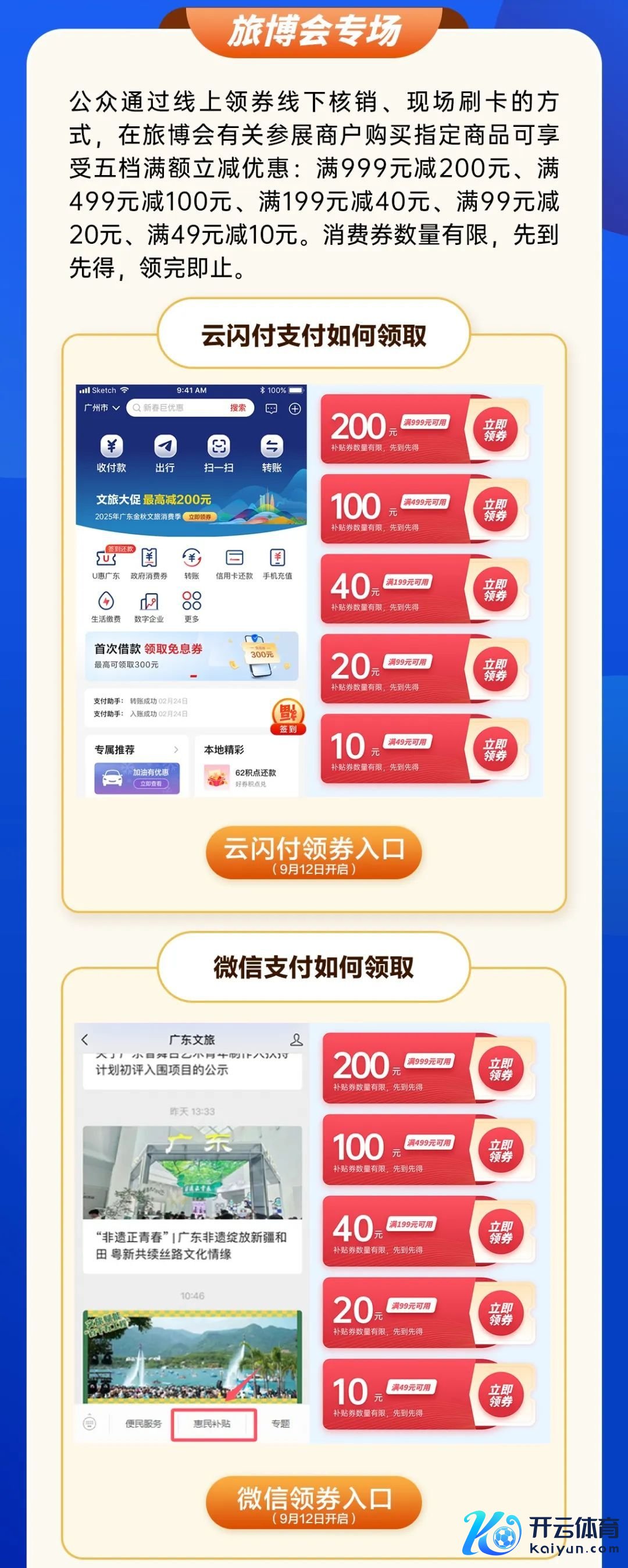 公众可通过“云闪付”APP、“广东文旅”微信公众号领取浪掷券并线下核销,或在旅博会现场刷卡浪掷,在参展商家购买指定文旅居品可享满减优惠,最高满999元减200元。