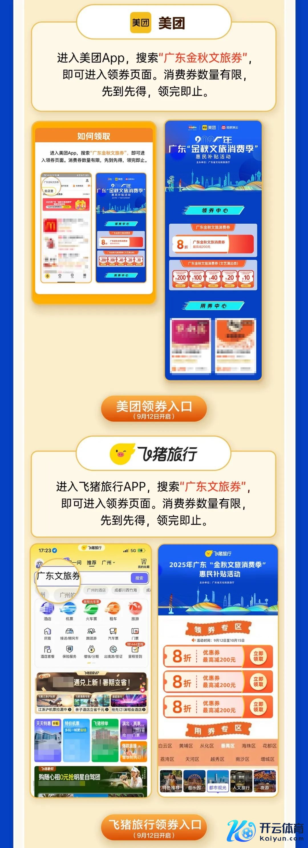 公众可通过携程旅行(联动去哪儿旅行、Trip.com)、好意思团(联动猫眼)、飞猪旅行(联动Lazada Travel、AE、大麦网、淘票票)等平台,购买广东省内游、国内游、入境游度假廓清,省内干系景区门票、文艺献技票、旅馆住宿、入境旅游、低空旅游、游艇旅游、赛事旅游、乡村旅游、研学旅游、银发旅游、文物主题游等居品和劳动,以及文创居品、旅游商品、文旅装备等,可享8折或满减优惠,单笔浪掷最高可减200元。