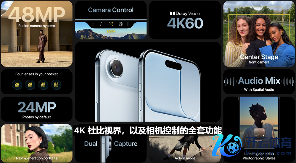 正面是1800万像素的Center Stage前置摄像头,因循更广视角、更高分辨率;后面三颗摄像头初度一皆升级到4800万像素,整个是会通式摄像头。