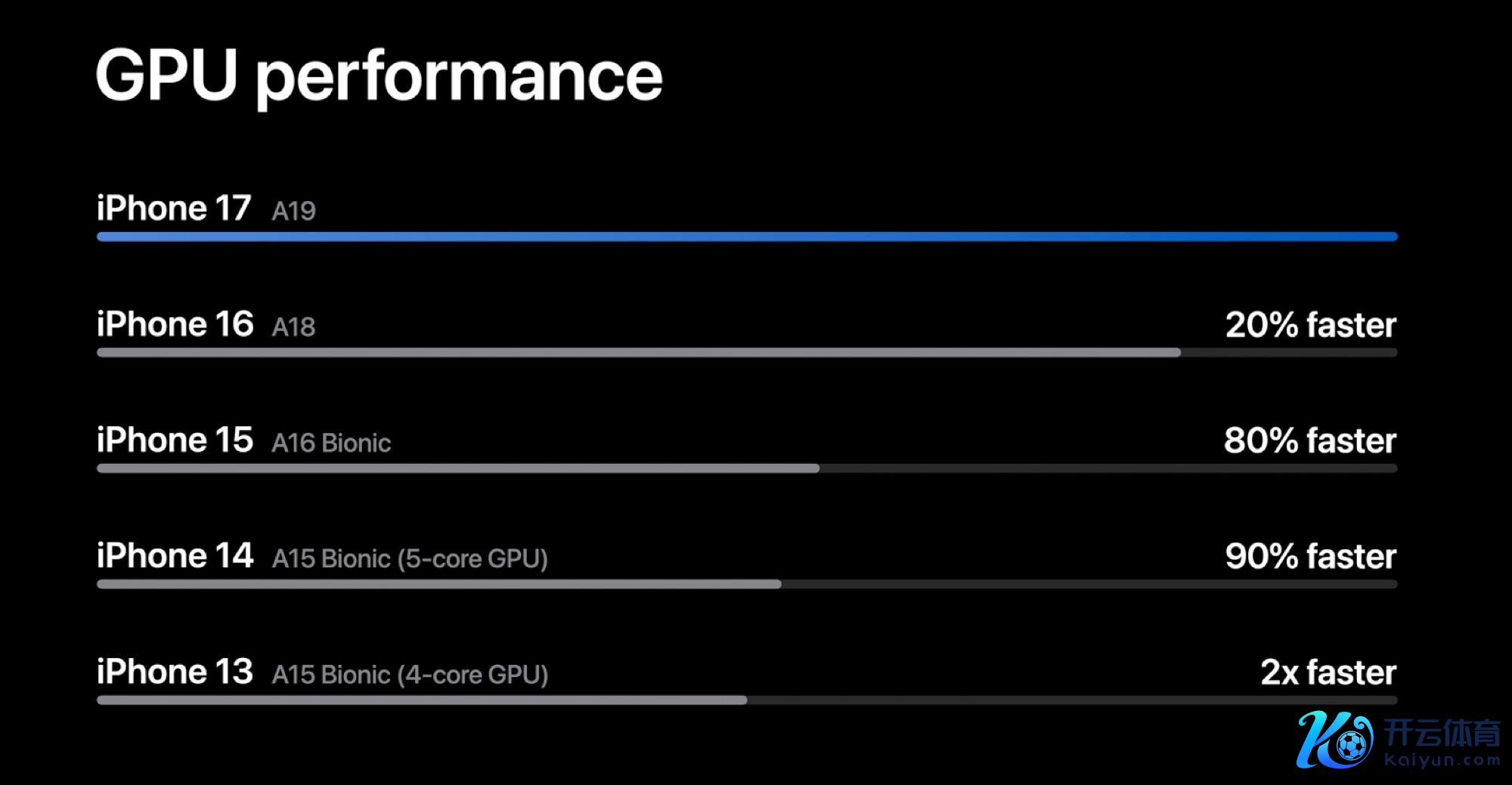 A19芯片比A18芯片快20%,比A16仿生芯片快80%,速率是4核A15仿生芯片速率的2倍。