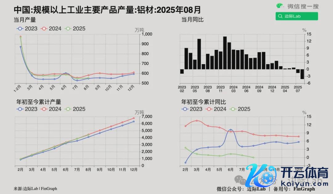 ·8月份世界限制以上工业铝材产量同比下降4.2%,创下2022年以来最大单月降幅。2025年1至8月,世界铝材累计产量为4379.0万吨,累计同比抓平(0.0%)。