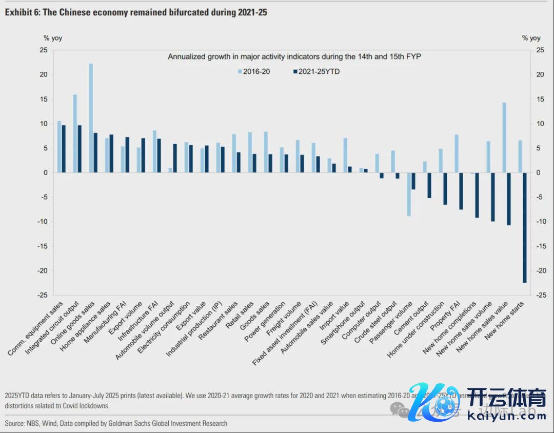 1.中国经济自2021年以来呈现出权贵的双轨分化特征。在2021年至2025年上半年,受益于政策支抓,高技术制造业、出口及政府主导的基建投资等界限均扫尾了卓著5%的年化增长。而在合并时期,绝大精深房地产关系行径,包括新开工、销售、投资和开拓,则履历了卓著5%的年化萎缩,完全逆转了2016至2020年间的增长态势。