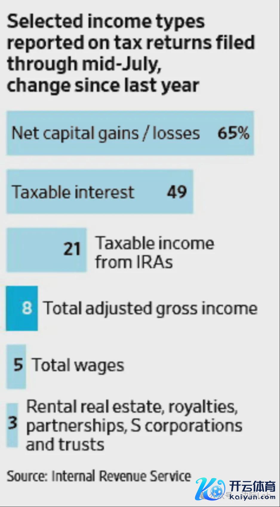 6.康健的股票阛阓正权贵提振好意思国联邦税收,成本利得税收入的激增所带来的财政孝顺已堪比特朗普加征的关税收入。凭证好意思国国税局(IRS)适度7月中旬的2024征税年度呈报数据,征税东谈主讲述的净成本利得总数达5300亿好意思元,同比增长高达65%,在种种收入中增幅最大。据国会预算办公室(CBO)统计,这一增长意想将为本财年增多卓著1000亿好意思元的联邦收入,增量与关税收入节略相配。这一趋势是股市连续两年高潮卓著20%的平直恶果。