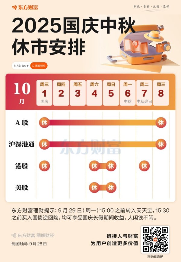国庆中秋假期(10月1日~8日)行将驾临,左证官方的安排开云体育,假期技术各地市集的往复情况如下: A股10月1日~8日休市,10月9日(星期四)起照常开市。 沪深港股通10月1日~8日暂停工作,10月9日(星期四)起照常怒放工作。 港股10月1日(国庆节今日)、10月4日~5日(周六、周日)、10月7日(中秋节未来)休市,其余日历照常开市。 好意思股10月4日~5日(周六、周日)休市,其余日历照常开市。 节后开门红概率大 长假事后,A股市集奈何进展,一直亦然投资者暖和的焦点。统计发现,夙昔2